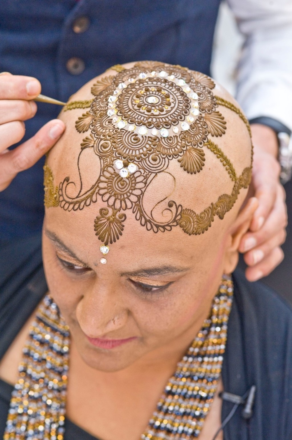 Svetoznámy henár Ash Kumar sa venoval tejto nádhernej korune viac ako hodinu. Skrášľoval lebku Dipiky Patelovej, ktorá prišla o vlasy počas boja s chorobou.