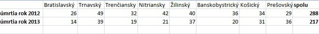 Počet úmrtí v predošlých rokoch na Slovensku: