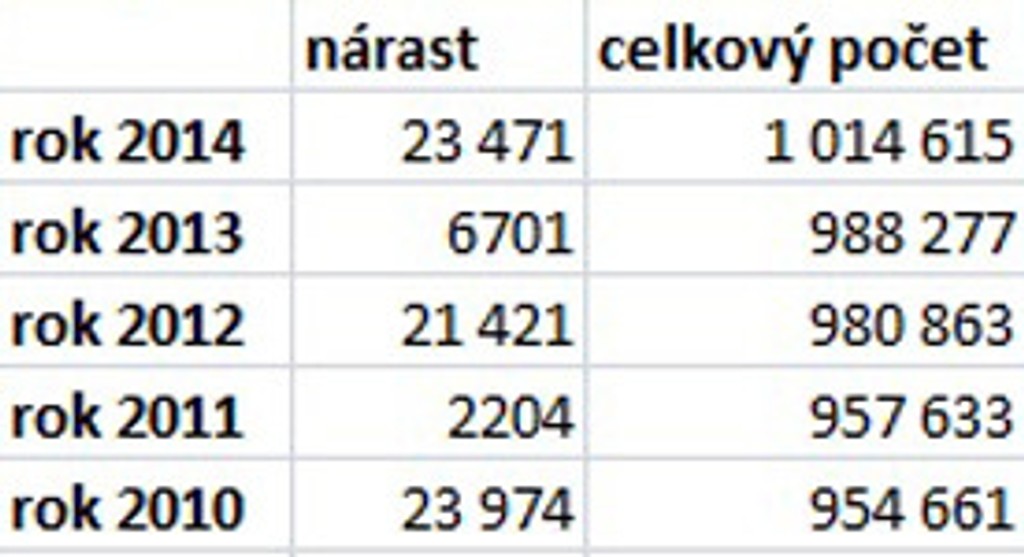 Nárast počtu starobných dôchodcov v predošlých rokoch podľa Sociálnej poisťovne: