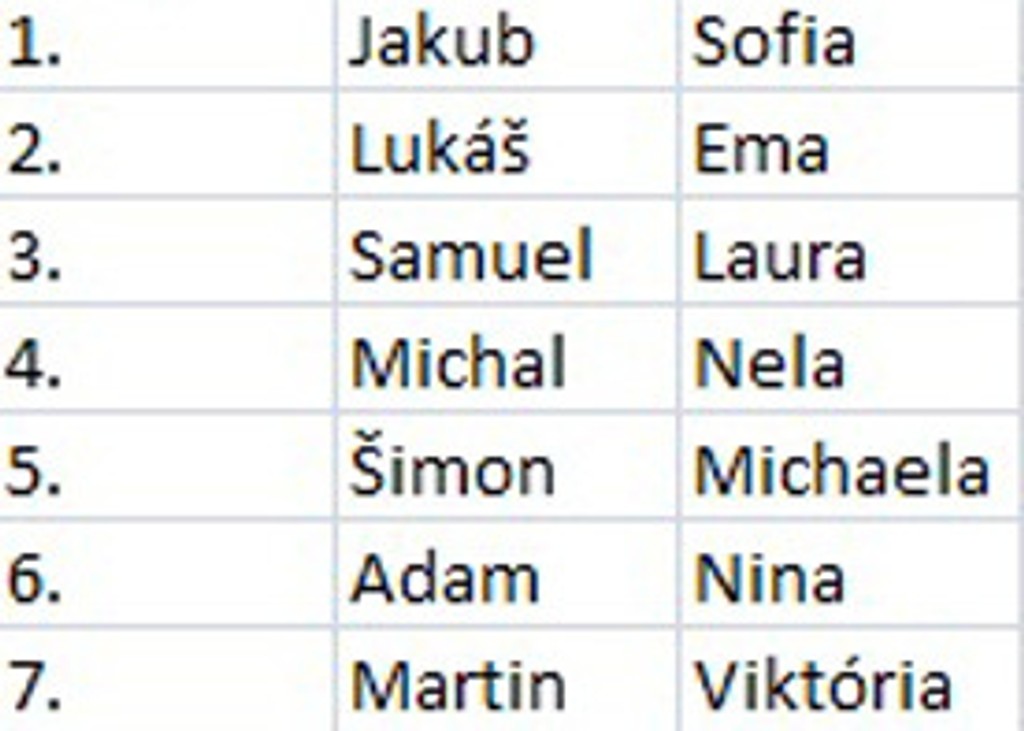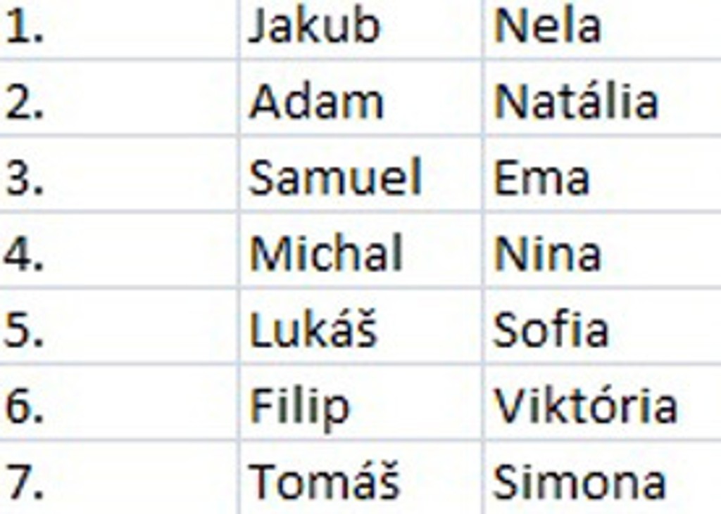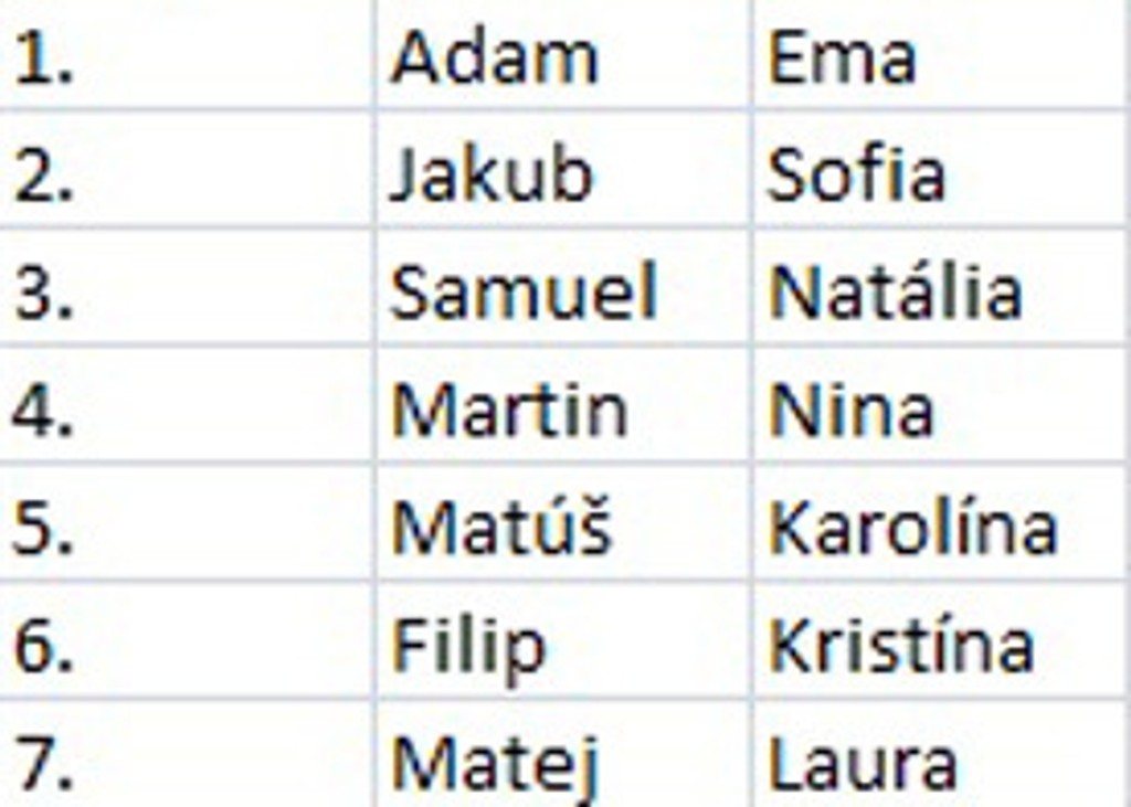 Po Adamovi a Jakubovi na druhom mieste dopĺňa prvú trojicu najpopulárnejších mien naďalej Samuel. Za ním nasledoval Martin, Matúš, Filip a Matej. Oproti minulému roku sme zaznamenali výraznejší pokles používania mena Lukáš a na Slovensku máme menej aj Michalov a Tomášov," priblížila vedúca redaktorka portálu Martina Smatanová.