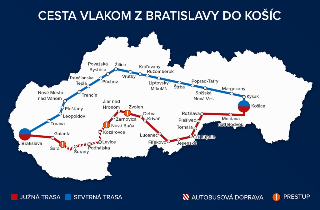 Dodal, že jazda z Bratislavy do Šale je pohodová, keďže šlo o plne klimatizovaný vlak. Komplikácie nastali vo chvíli, ako vystúpil v Šali. „Autobusom sme sa prepravili do Novej Bane, odtiaľ vlakom do Zvolena a následne ďalšie tri hodiny do Košíc. Je to komplikovaná cesta, vzhľadom na výluky, ktoré sú spôsobené rekonštrukčnými prácami.“ Dôvodom sú totiž zastaralé dráhy. Táto výluka bude trvať až do konca októbra, čiže celú letnú sezónu.