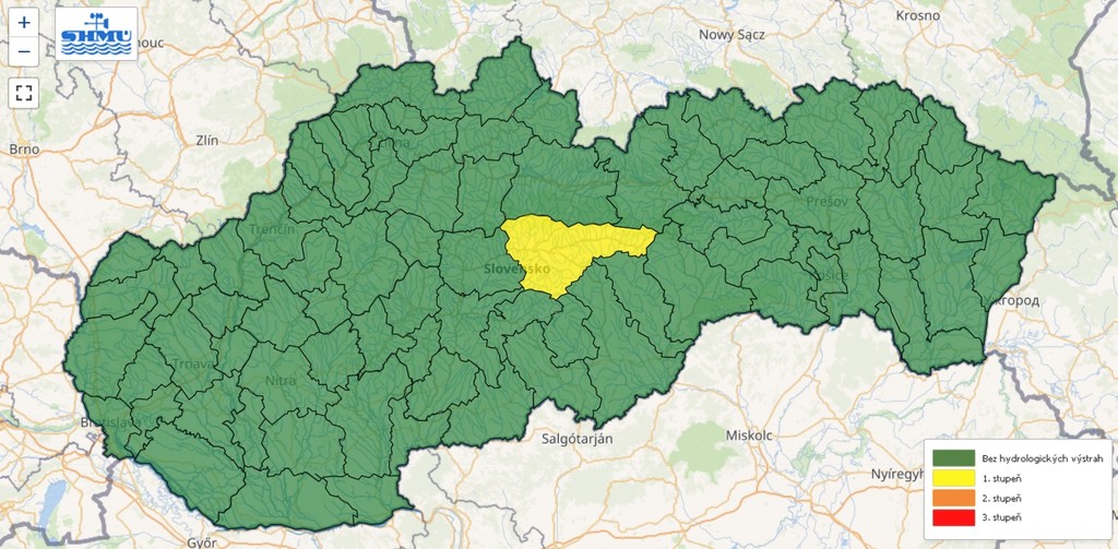 "Vzhľadom na očakávané prívalové zrážky pri búrkach predpokladáme prechodný výrazný lokálny vzostup vodných hladín, hlavne na malých tokoch, s možnosťou dosiahnutia a prekročenia vodných stavov, zodpovedajúcich stupňom povodňovej aktivity," ozrejmil ústav.