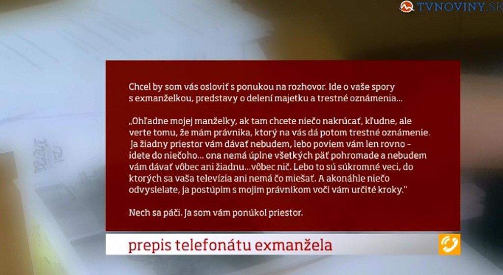 Pre zachovanie objektivity vám ukážeme aspoň prepis telefonického rozhovoru s exmanželom pani Anny.