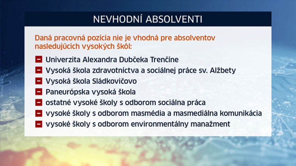 Spoločnosť, ktorá navrhuje a vyrába nábytok potrebovala logistu a ekonóma. Avšak zverejnila školy, o ktoré nemá záujem. Ich absolventi im v minulosti posielali stovky pracovných žiadostí. Dali im šancu, ale neuspeli. Neovládali základné vedomosti, ktoré od nich žiadali.