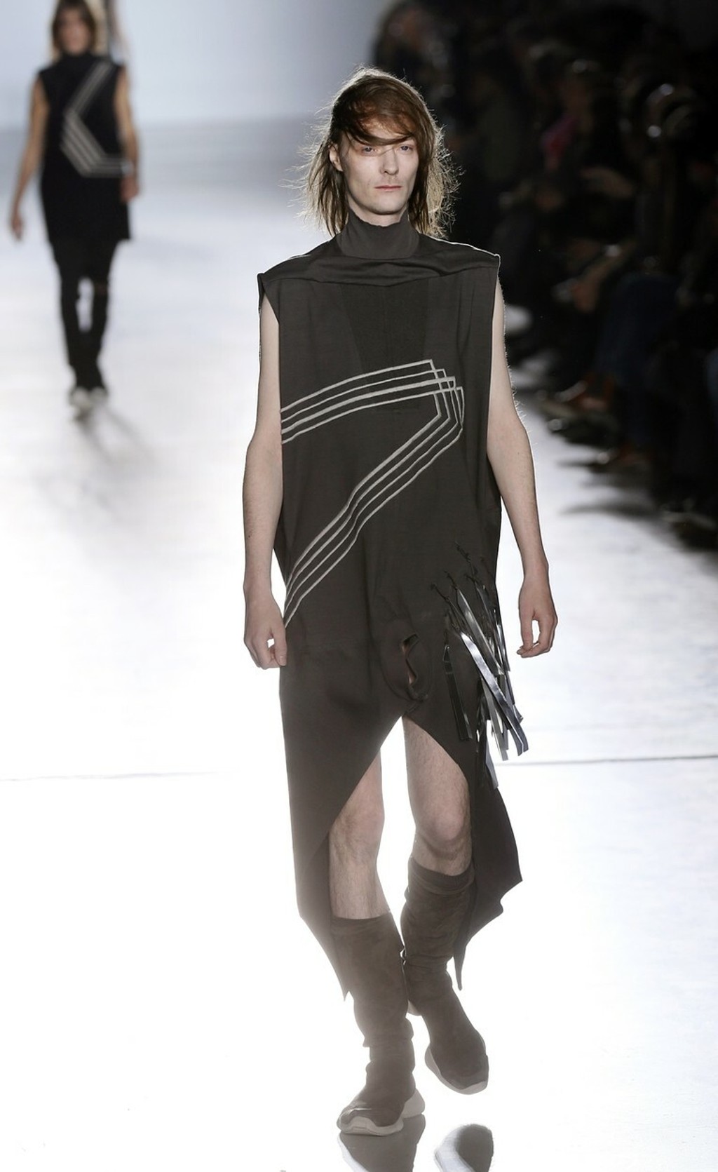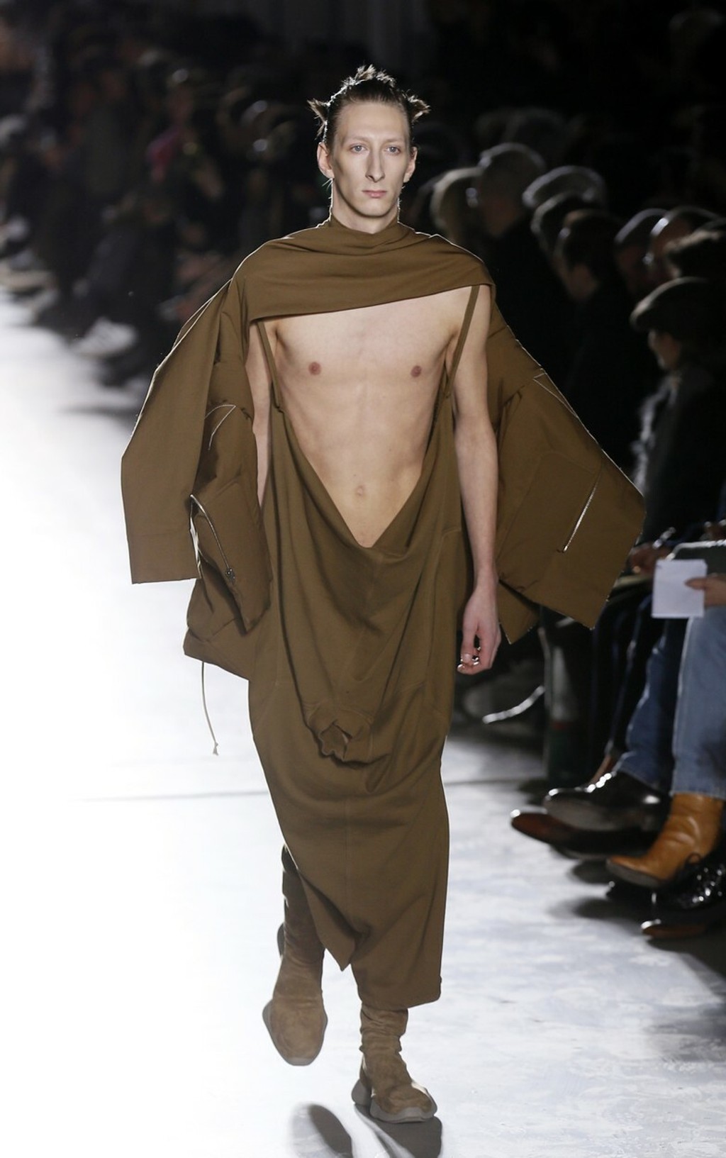 Diváci v prvom rade si v Paríži okrem módnych výstrelkov návrhára Ricka Owensa mohli pozrieť aj niečo naviac. Mnohí modely totiž predviedli nielen oblečenie, ale aj svoju mužskú pýchu. Pod zvláštnymi modelmi, ktoré boli inšpirované náboženskými rúchami, boli „naostro".