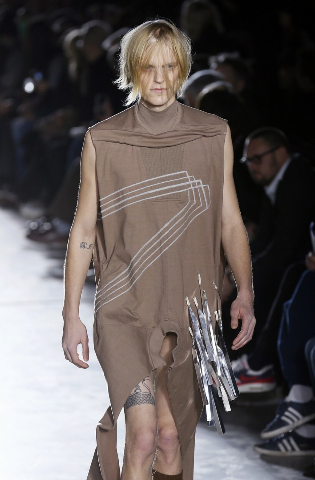 Výrezy navrhol Rick priamo na rozkrok. Ani sa poriadne prehliadka neskončila a na sociálnych sieťach sa strhla búrlivá diskusia. Nahota verzus náboženský motív. Ako napísali módni redaktori z New York Magazine, rok 2014 bol rokom zadkov, 2015 zase penisov. Kontroverzia, ktorou si Rick Owens získal popularitu.