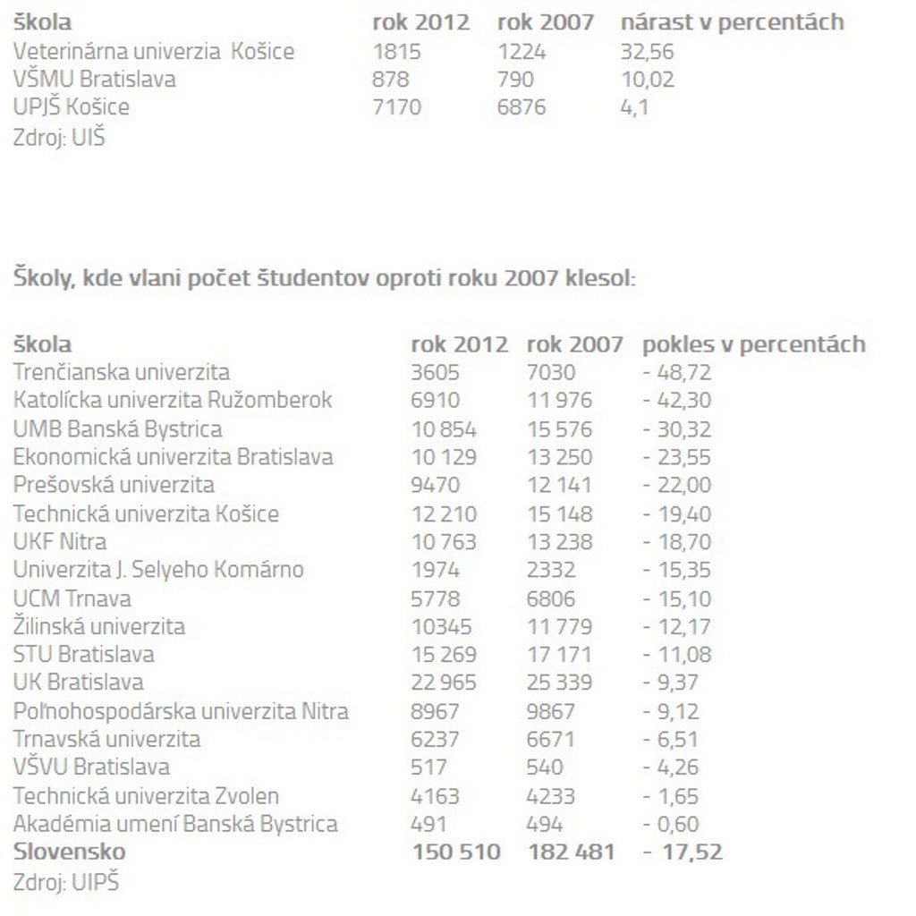 Na Slovensku dlhé roky počet vysokoškolákov prudko rástol, ale už dlhšie pod tlakom zníženej pôrodnosti študentov ubúda: