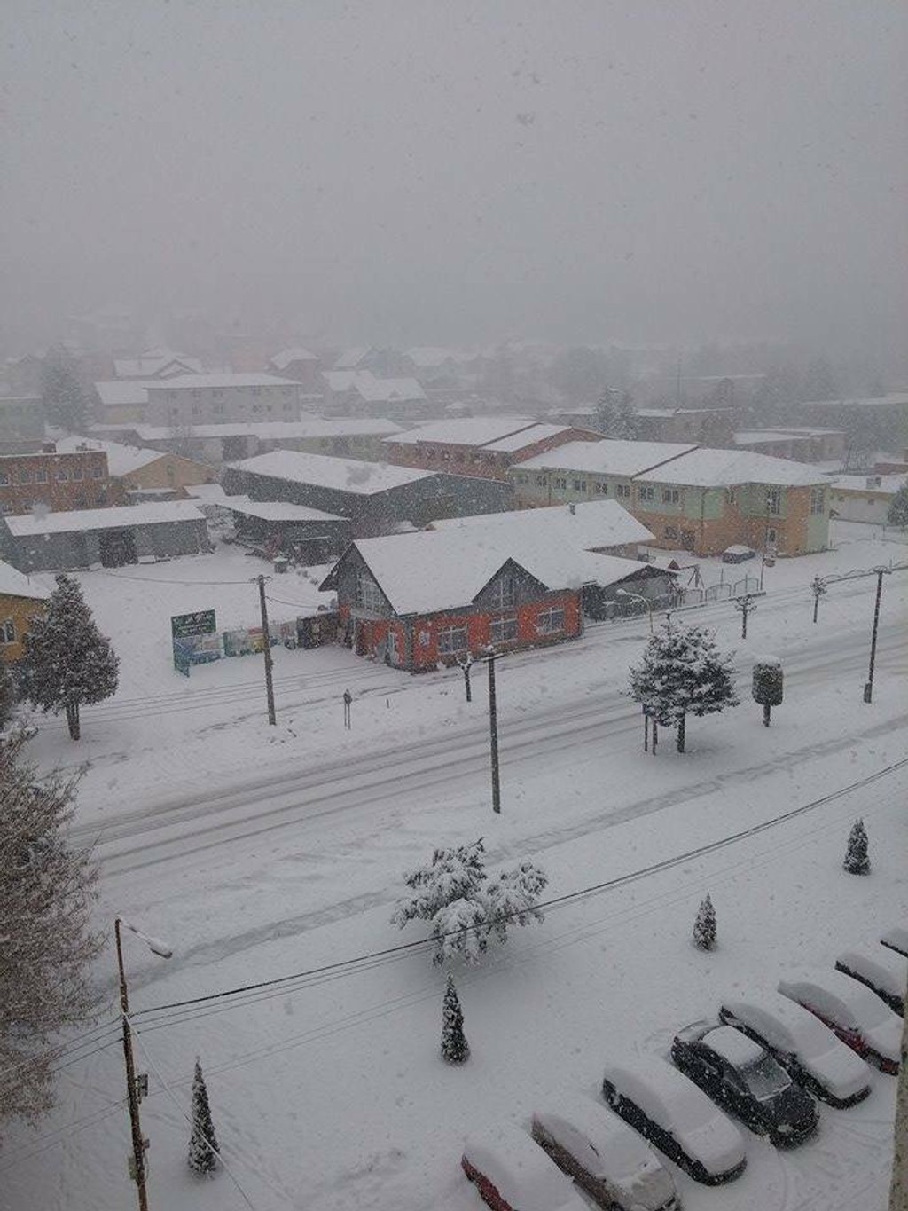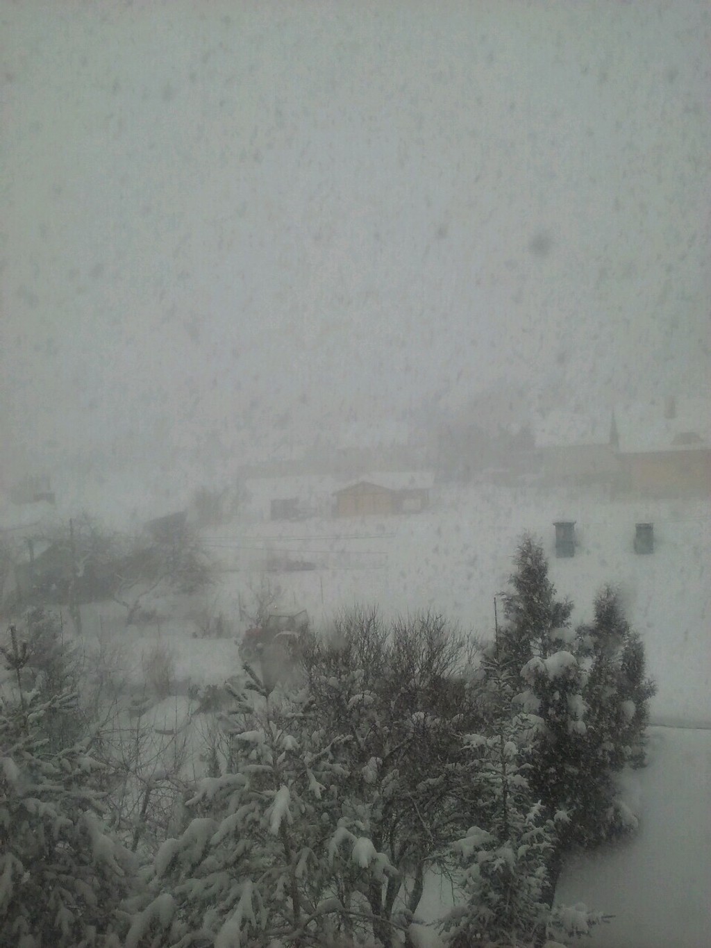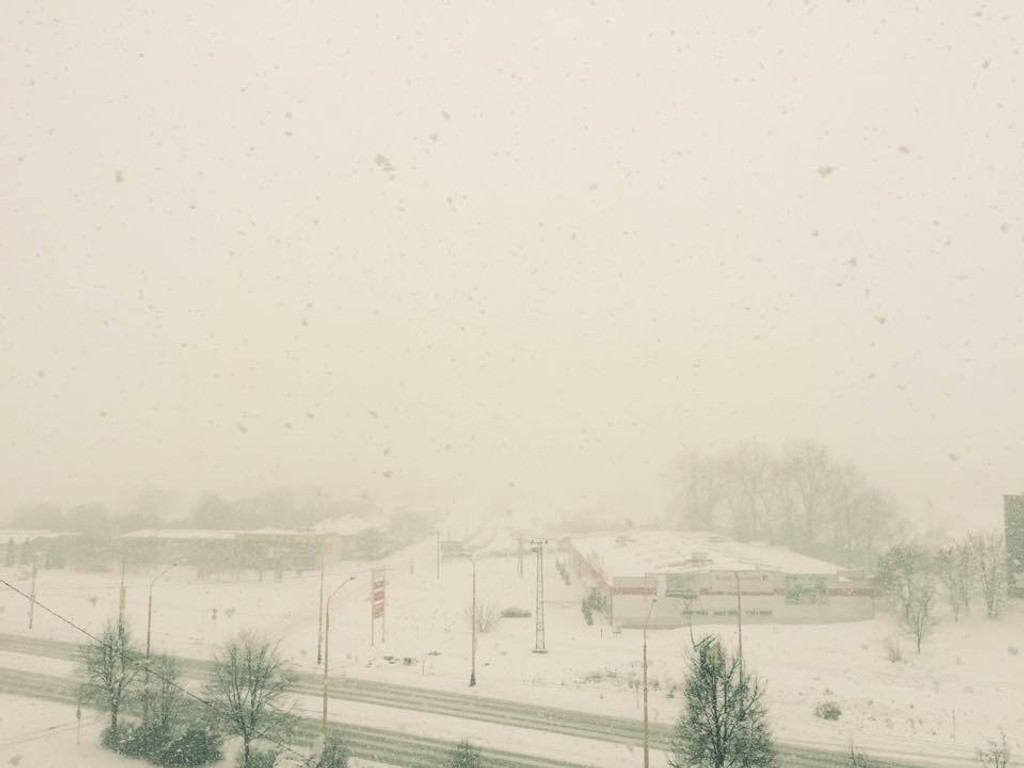 Asi pre hodinou takto husto snežilo v Martine. Fotografia od čitateľky Mirky.