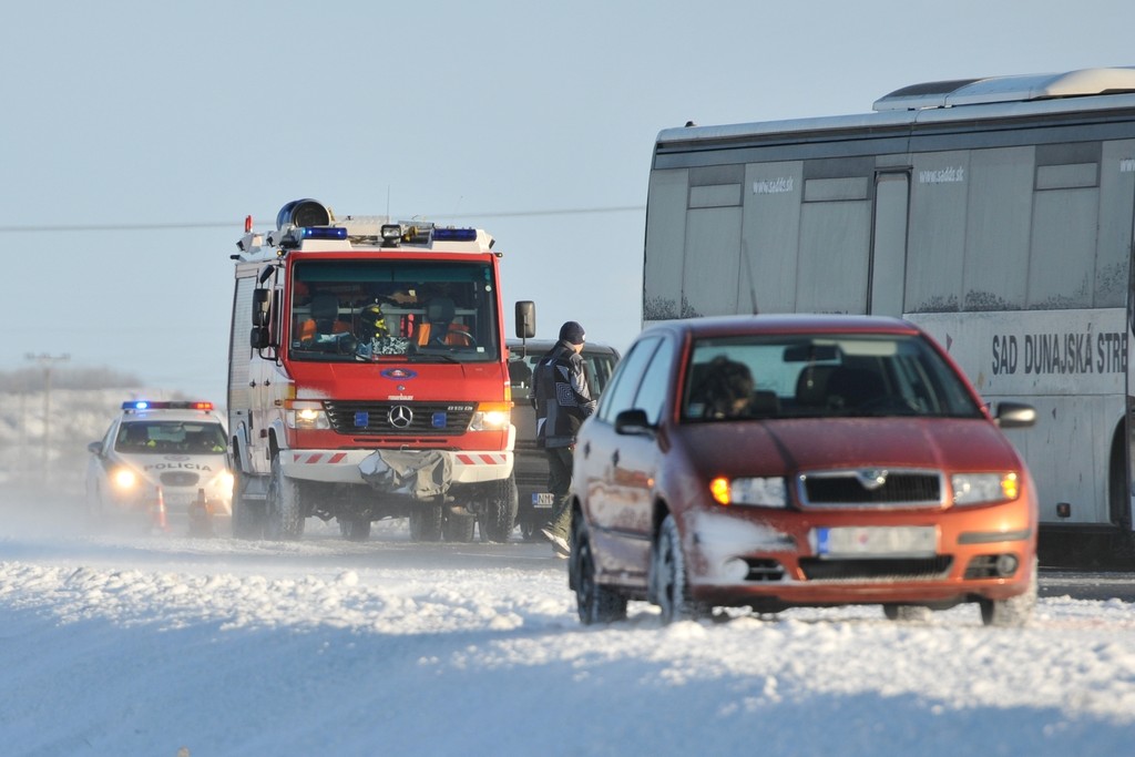 V kalamite spôsobenej silným vetrom a snehom uviazlo v poškodených autách niekoľko desiatok ľudí. "Pripravili sme pre nich mikrobus a polícia pristavila aj autobus, aby sme mohli 60 až 70 ľudí previezť na Stredisko správy a údržby R1na Selenci, odkiaľ si ich potom môžu vyzdvihnúť príbuzní," povedal Pánsky.
