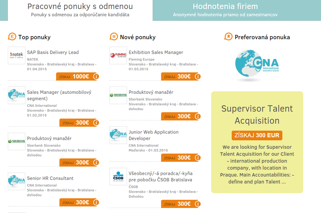 Odmena 300 eur a viac za úspešného kandidáta čaká práve na vás