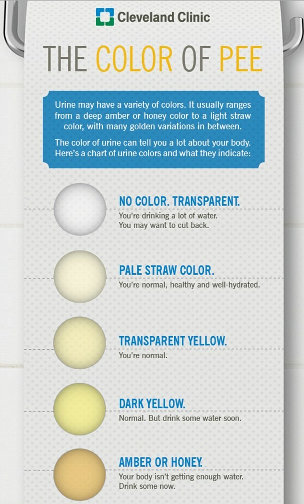 Doktor Chris Steel v programe ITV´s This Morning zoradil ampulky s močom a ukazoval, čo ktorá farba znamená. Môžete ho mať priesvitný, žltý, tmavožltý, až po červený a dokonca modrý.