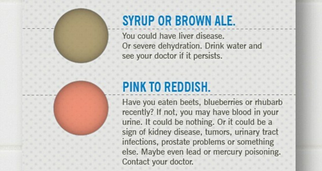 Naopak, keď pijete vody málo, jeho zápach je silnejší a je tmavší. Tu sa predpokladajú aj pečeňové problémy. A pozor na červený moč! Ten môže byť aj príznakom rakoviny. Doktor Steele samozrejme hovorí o tom, pokiaľ ho máte červený často. Jednorázovo to môže byť len z jedla. Stačí, že ste jedli červenú repu, černice, ríbezle alebo rebarboru.