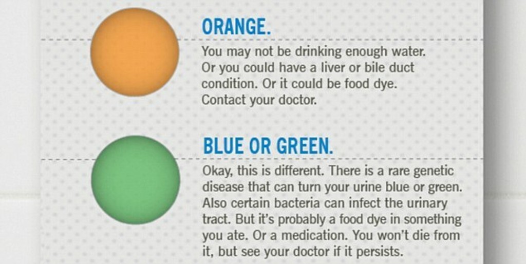 Veľa záleží aj od toho, čo jete. Modrý moč môžete mať po konzumácii špargle a potravinových farbív. Vtedy sa môže zmeniť dokonca aj na zelený. Tmavú farbu spôsobuje preháňadlo , spenený moč je zase signálom, že jete priveľa bielkovín. Čistý moč napovedá o tom, že pijete primerané množstvo vody a to je dobré.
