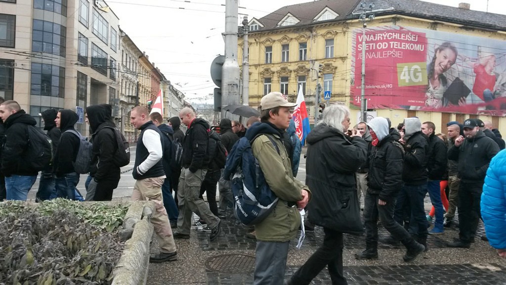 Pochod nacionalistov sa k blokáde pripravovanej na Námestí SNP v Bratislave nedostal. Polícia ho odklonila, na konci Obchodnej ulice však museli blokovať prívržencov antifašistického hnutia Antifa, ktorí sa k pochodujúcim nacionalistom chceli dostať.