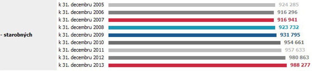 Pred rokom - v januári 2013 - počet starobných dôchodcov prvýkrát stúpol nad 981-tisíc.