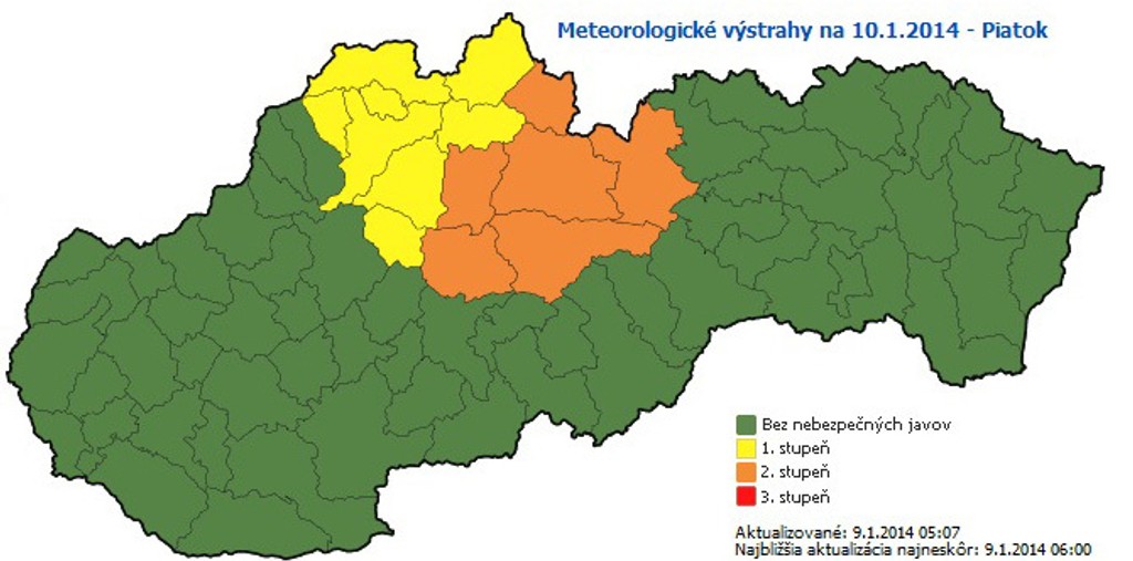 Slovenský hydrometeorologický ústav vydal výstrahu druhého z troch stupňov pre okresy Banská Bystrica, Brezno, Poprad, Ružomberok, Liptovský Mikuláš a Tvrdošín.