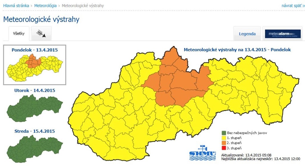 Prvý stupeň výstrah vyhlásili meteorológovia pre Bratislavský, Trenčiansky, Košický, Nitriansky a Trnavský kraj. Rýchlosť vetra by tam krátkodobo mala dosiahnuť 57 až 80 km/h. Veterné počasie v takejto intenzite je v danom ročnom období bežné, môže ale spôsobiť škody menšieho rozsahu.