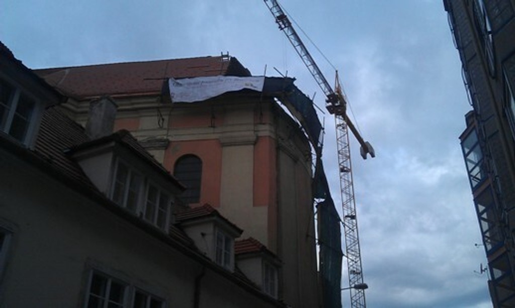 Z kostola Najsvätejšej trojice, ktorý sa nachádza na Župnom námestí v Bratislave, pred deviatou hodinou spadol múr a lešenie. Zistil to až okoloidúci, ktorý zalarmoval hasičov.