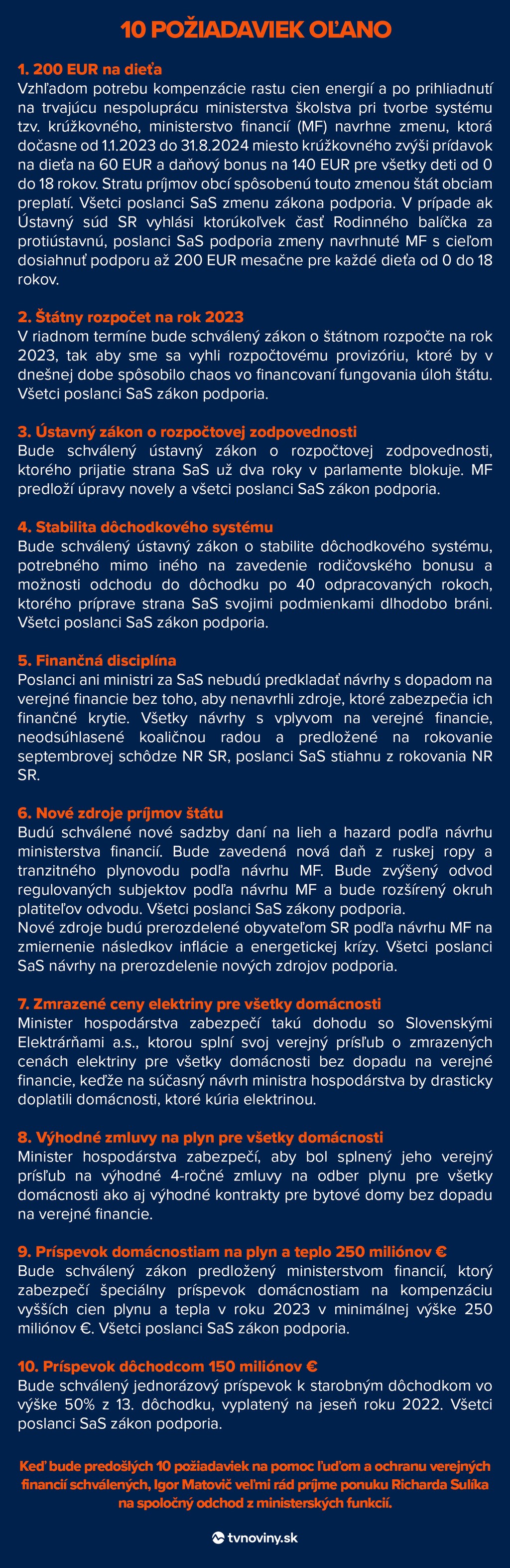 Ak sa schvália opatrenia na riešenie energetickej krízy, ktoré navrhuje OĽANO, minister financií Igor Matovič (OĽANO) je pripravený odísť z vlády spolu s Richardom Sulíkom (SaS). Pred rokovaním vlády to oznámil premiér Eduard Heger (OĽANO).