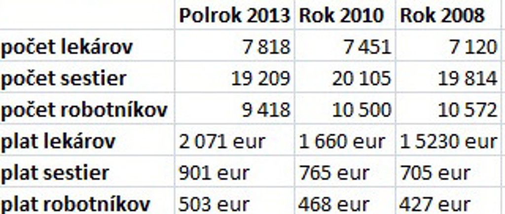 V roku 2012 zarábali podľa ministerstva zdravotníctva mesačne vo fakultných a univerzitných nemocniciach lekári v priemere 2 500 eur v hrubom, sestry 1 016 eur a iní zdravotnícki pracovníci 783 eur.Sledujte Televízne noviny vo full HD a bez reklám na Voyo
