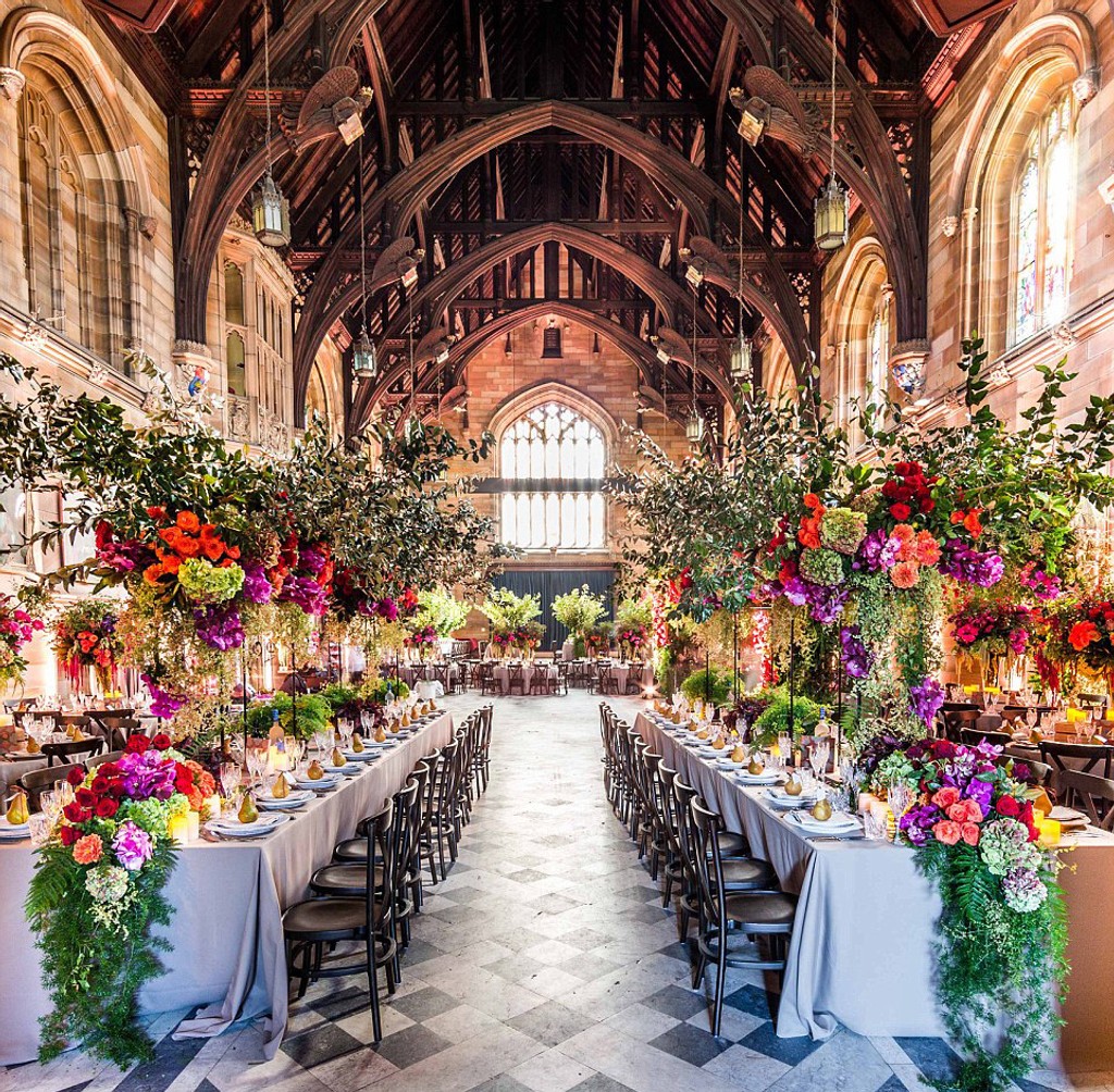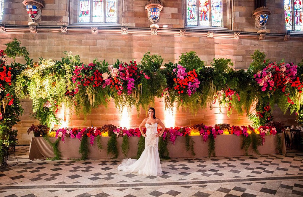 Kvety, kvety a kvety....za poriadne veľkú sumu. Dvojica mala hostinu v sieni univerzity v Sydney.