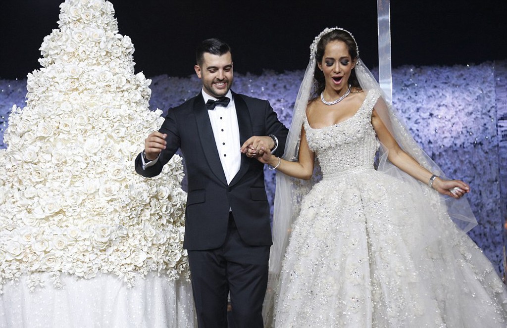 Couture róba od Elieho Saaba, plazmová obrazovka, vyše tisíc hostí, svadba v najväčšej sieni v Bejrúte a torta, na ktorú by musela nevesta vyliezť po rebríku. Aj takto to vyzeralo na ich svadbe.