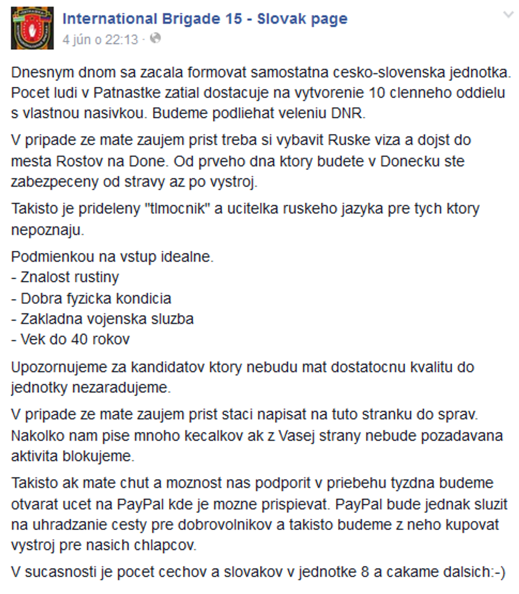 Na Ukrajine na strane separatistov bojuje niekoľko Slovákov a Čechov. Teraz však založili vlastnú česko-slovenskú bojovú jednotku, ktorá naberá na sile. Nových členov verbujú v ruskom meste Rostov nad Donom. Ako prvý o tom informoval portál aktuality.sk.