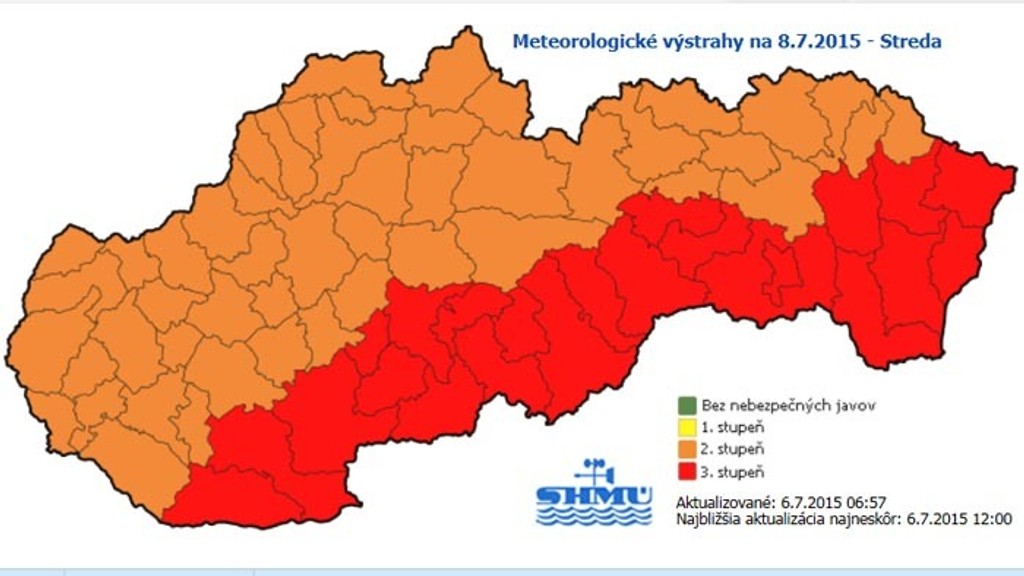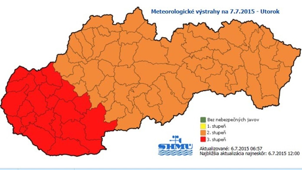 Aj v utorok k nám bude naďalej prúdiť veľmi teplý, tropický vzduch. Bude extrémne teplo. SHMÚ vydal na tento deň výstrahu najvyššieho stupňa. Tá platí najmä pre západné Slovensko.Denná teplota 33 až 37 stupňov. Na severe miestami okolo 31 stupňov.