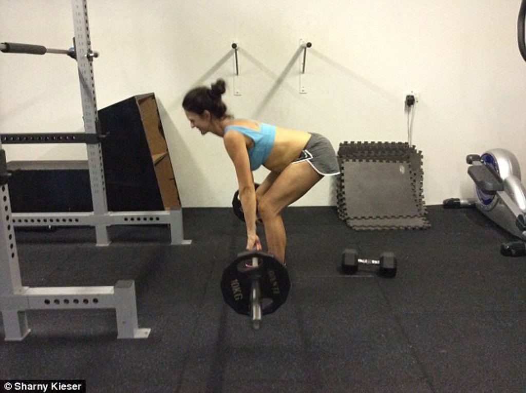 Po predchádzajúcich štyroch tehotenstvách si povedala dosť. "Pozrela som sa do zrkadla a pomyslela som si: "Preboha, kto zjedol Sharni?"." Cvičiť prestala preto, lebo sa bála, že by ublížila dieťatku alebo by potratila. Ale pri piatom dieťati si uvedomila, že bude v poriadku.