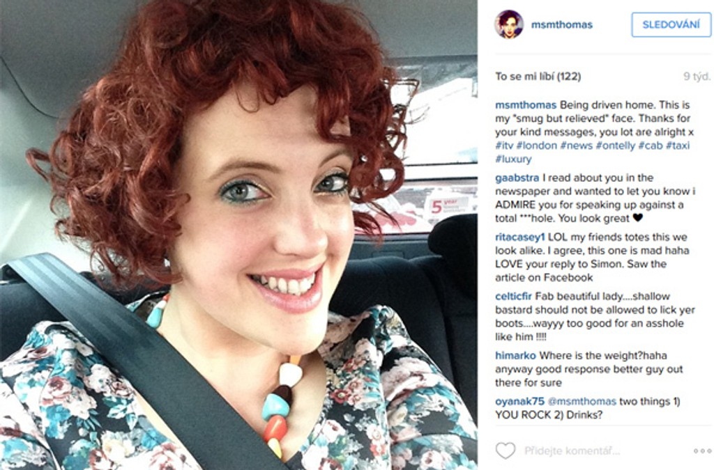 Odpísala mu, že je so sebou spokojná a že by nechcela vyzerať inak. To, že ho nepriťahuje je úplne v poriadku a nehnevá sa. Ale aj to, že je jedno, či ste krásny, milý, dobrosrdečný, šikovný, láskavý. Pokiaľ máte nadváhu, neuspejete. Preto apeluje na ženy, aby sa na to vykašľali a mali sa rady také, aké sú. Ženy ju za to obdivujú a súhlasia s ňou.
