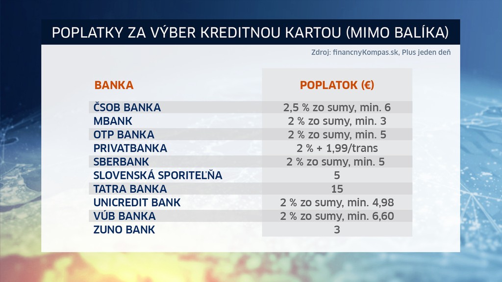 "Výbery z bankomatov v zahraničí sú výrazne drahšie. Každý stojí minimálne 1,20 eura. Závisí to od banky a typu karty," povedal pre denník Maroš Ovčarik, analytik Finančného kompasu.