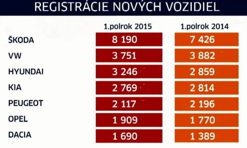 Česi, Nemci, Kórejci a Francúzi. Do prvej päťky najpredávanejších značiek na Slovensku sa už dlho nedarí nikomu inému preraziť. Slováci si za prvých šesť mesiacov tohto roka kúpili vyše 37-tisíc nových áut. V porovnaní s vlaňajškom je to len o pár stoviek viac, no podľa Zväzu automobilového priemyslu je to dobrý signál pre trh.