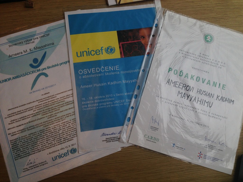 Volám sa Ameer Mayyahi, pochádzam z hlavného mesta Iraku Bagdad a na Slovensku žijem deväť rijiv. Rád by som povedal niečo o mojej krajine. Irak je krásne miesto so zaujímavou históriou. Je to krajina bohatá nielen na históriu a kultúru, ale aj na prírodné a nerastné suroviny. Žijú tam ľudia rôznych národností a rôznych vierovyznaní. Obyvatelia medzi sebou spolunažívali bez problémov, ale krajina trpela pod vládou diktátora. Po páde Saddáma Hussaina začal demokratický režim. Vtedy nastal v Iraku chaos a nepokoje, pretože každý chcel zrazu vládnuť. Ľudia ešte neboli zvyknutí na demokratický štýl riadenia štátu, chce to ešte čas. Tento stav vytvoril priestor pre vznik rôznych milícií, ozbrojených neznámych zložiek, ktoré mali moc i zbrane. Tieto skupiny sa chceli násilím dostať k moci. Prvou ich úlohou bolo vyhnať inteligentných ľudí - advokátov, umelcov, lekárov atď.