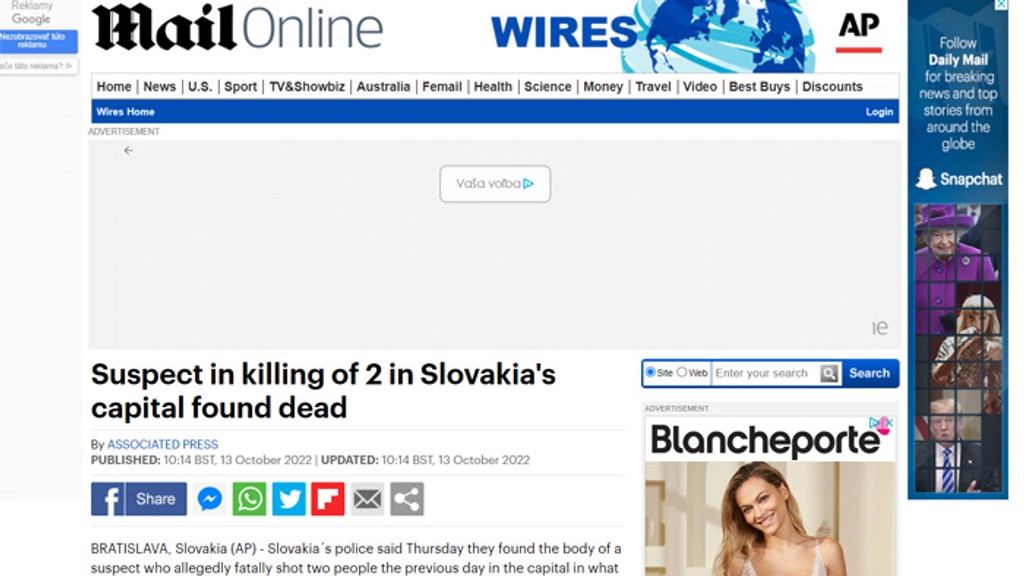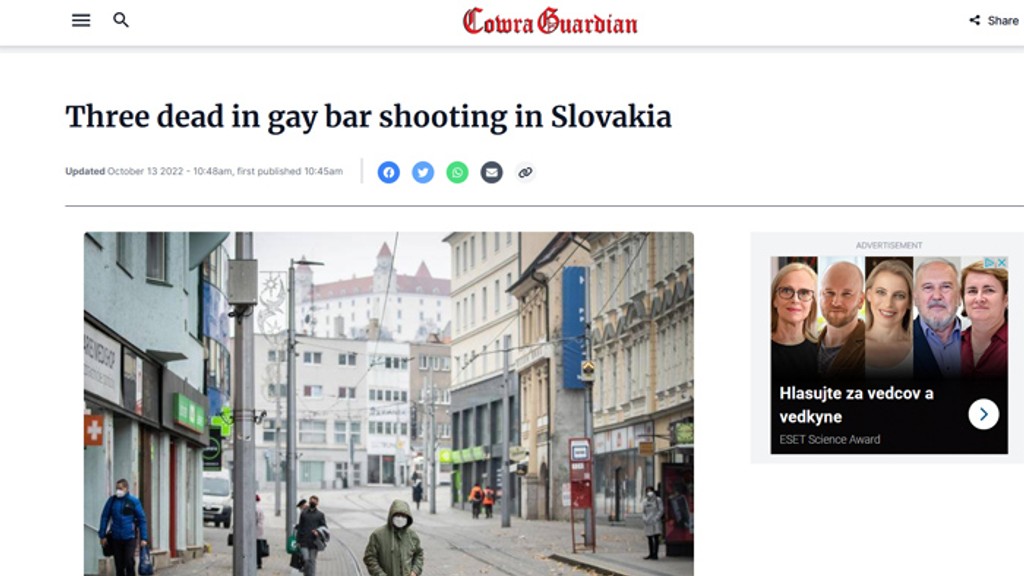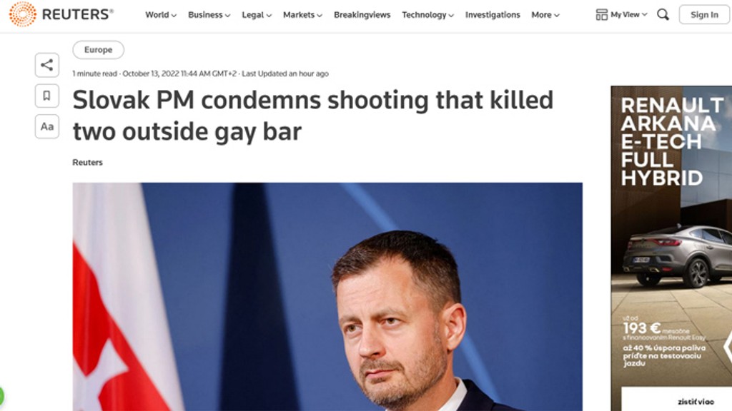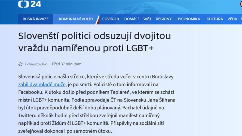 Dvojnásobnú vraždu, ktorá šokovala Slovensko, si všímajú aj zahraničné médiá. V stredu (12.10.) vo večerných hodinách tínedžer Juraj K. pripravil chladnokrvne o život dvoch mladých ľudí, ktorí patrili k LGBTI komunite. Ďalšiu osobu zranil. Pred útokom zverejnil manifest proti Židom a LGBTI komunite.