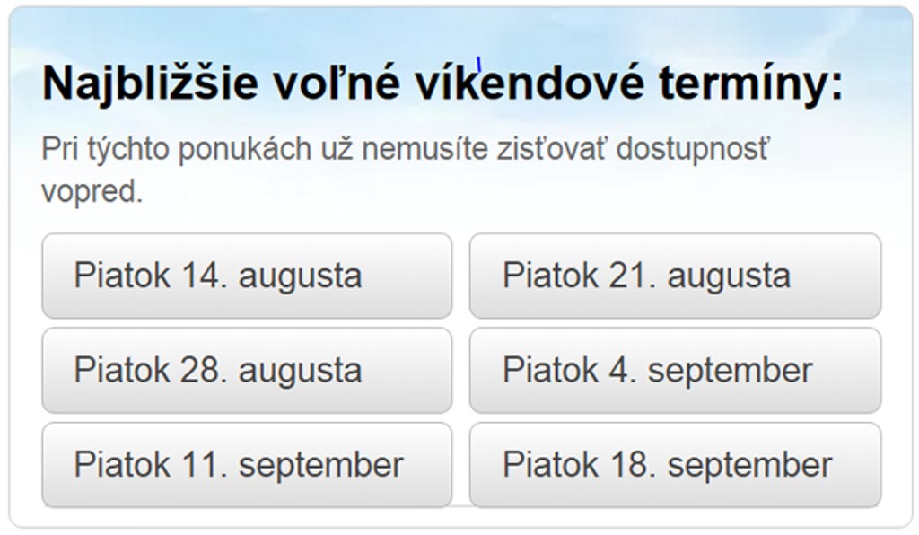 ,,Výber dovoleniek aj víkendových pobytov sme pre zákazníkov v tomto roku zjednodušili - nemusia hodiny prehľadávať množstvo ponúk ani telefonovať hotelom, kedy majú voľné termíny. Jednoducho si za pár minút vyfiltrujú iba tie ponuky, ktoré im najviac vyhovujú.