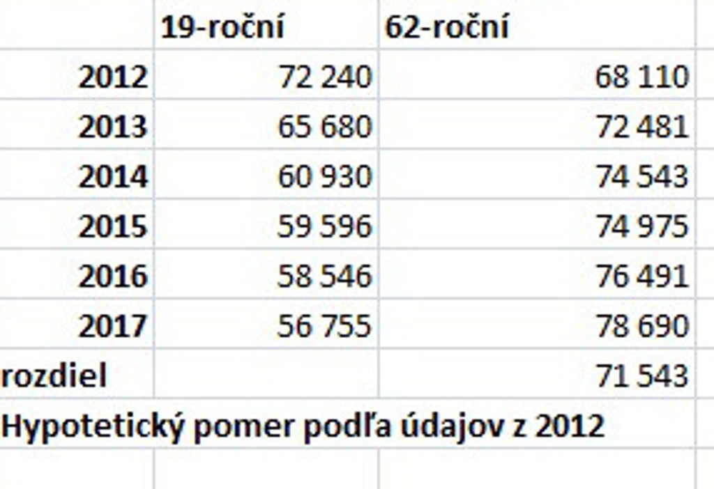 Keby odchádzali všetci do penzie vo veku 62 rokov a začali pracovať v 19-tich, podľa údajov Štatistického úradu z roku 2012 by odchádzajúci v najbližšom období mali prevýšiť prichádzajúcich o viac než 50-tisíc.