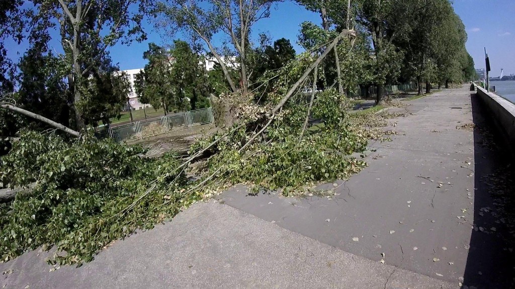 Sú na nich zachytené polámané a vyvrátené stromy na nábreží pri Dunaji. Podľa dostupných informácií padajúce topole našťastie nikoho nezranili.