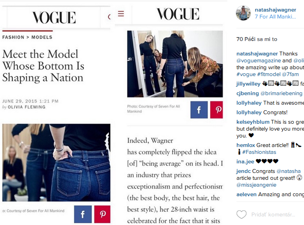 Natasha (34) zdobí titulky módnych časopisov po celom svete. Väčšina značiek, ktoré sa sústreďujú na denim, si ju vyberajú na prezentáciu nových kolekcií. Modelka oblieka džínsy číslo 28, píše portál Mirror.co.uk