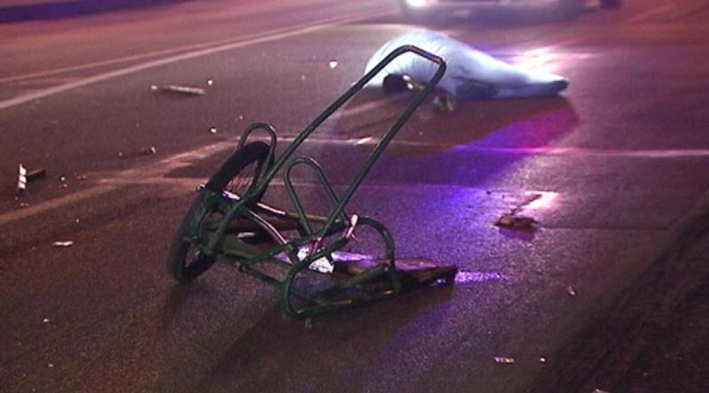 Chodec išiel po okraji cesty ,mal na sebe reflexnú vestu. Pred sebou tlačil káričku, keď do neho zozadu narazilo auto. Náraz ho odhodil na predne sklo. Preletel cez kapotu a padol na zem.