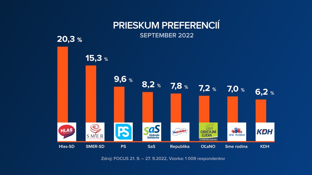 Celonárodné prieskumy už dlhodobo favorizujú na víťaza parlamentných volieb Hlas. Druhé miesto si dlhodobo drží Smer. V posledných meraniach sa na tretie miesto predralo Progresívne Slovensko, ktoré preskočilo SaS. Do NR SR by sa dostalo ešte OĽaNO, Sme rodina, Republika a KDH.