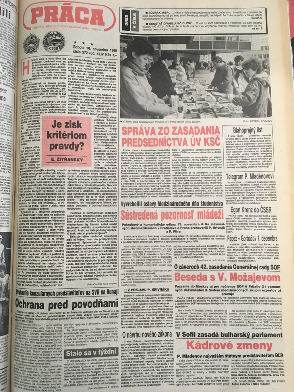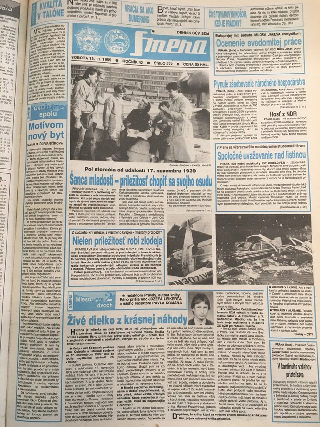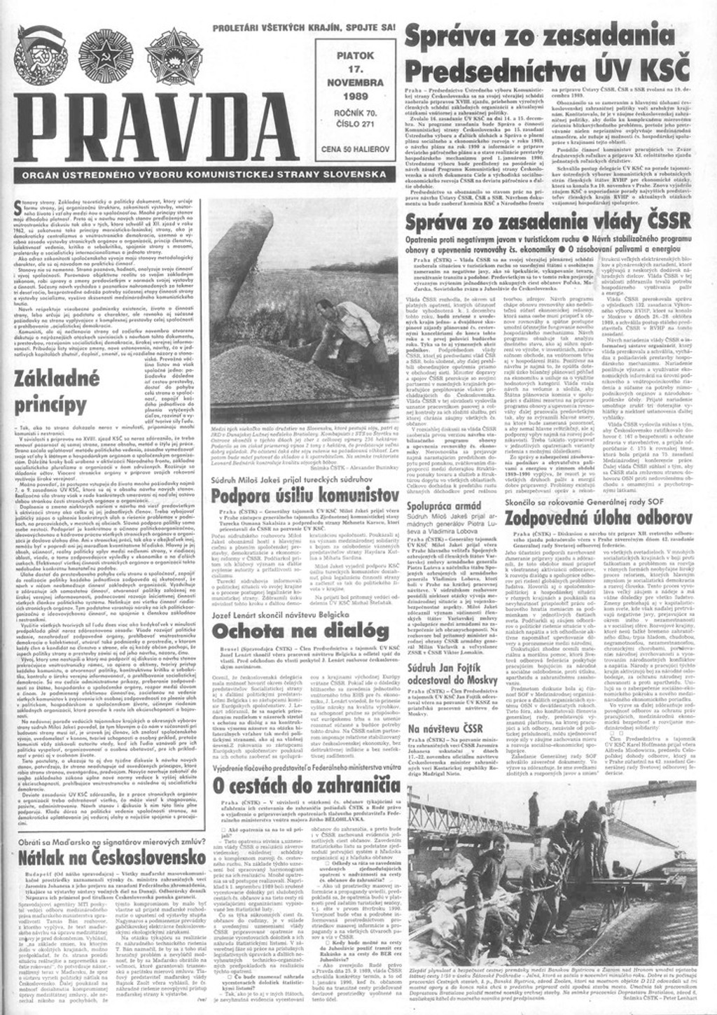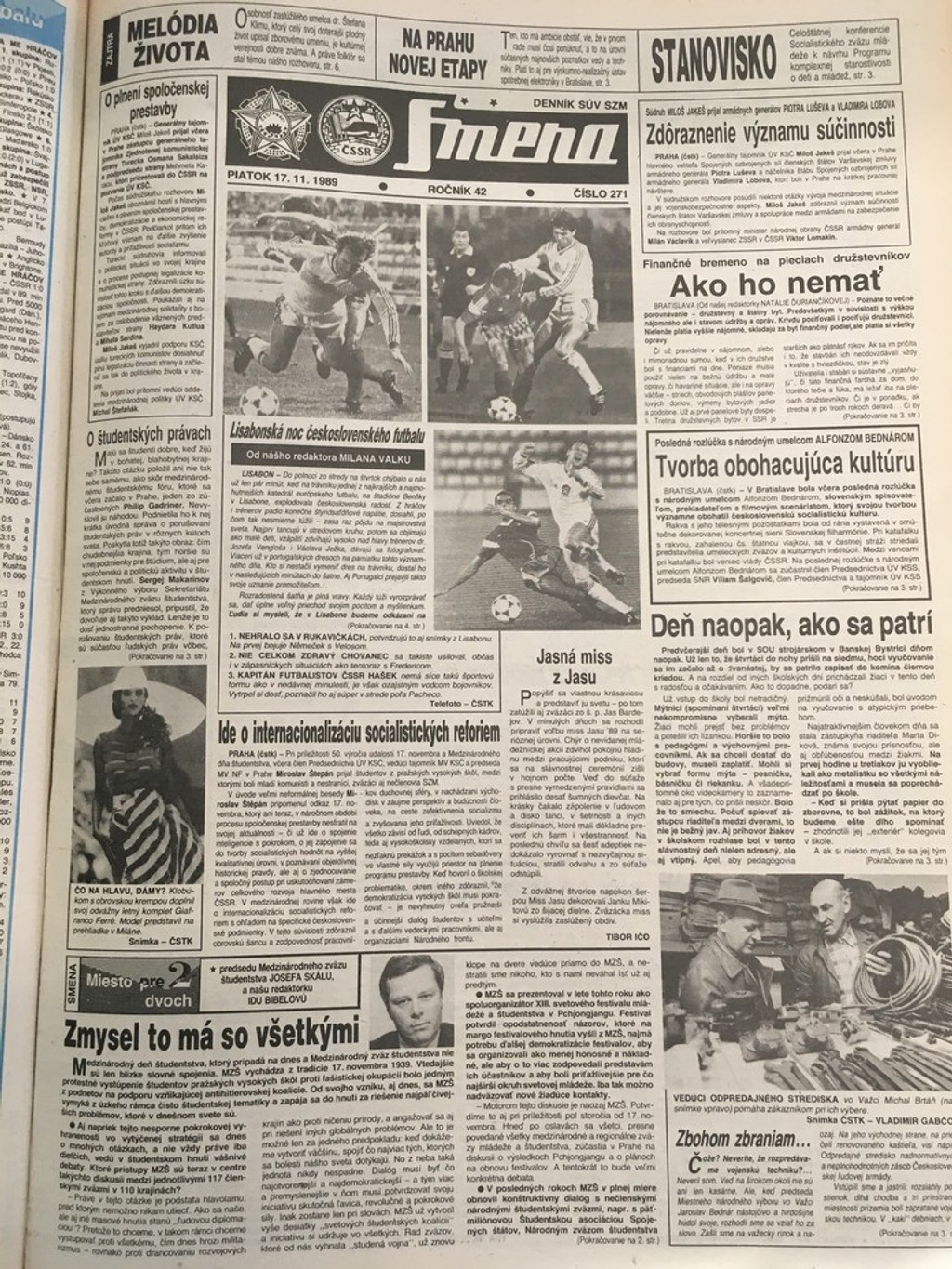 Denník hneď po 17. novembri zverejnil titulnú stranu novín výraznou červenou farbou. O prvotných protestoch študentov však informujú veľmi málo a to článkom s titulkom: „Vyvrcholili oslavy medzinárodného dňa študentstva."