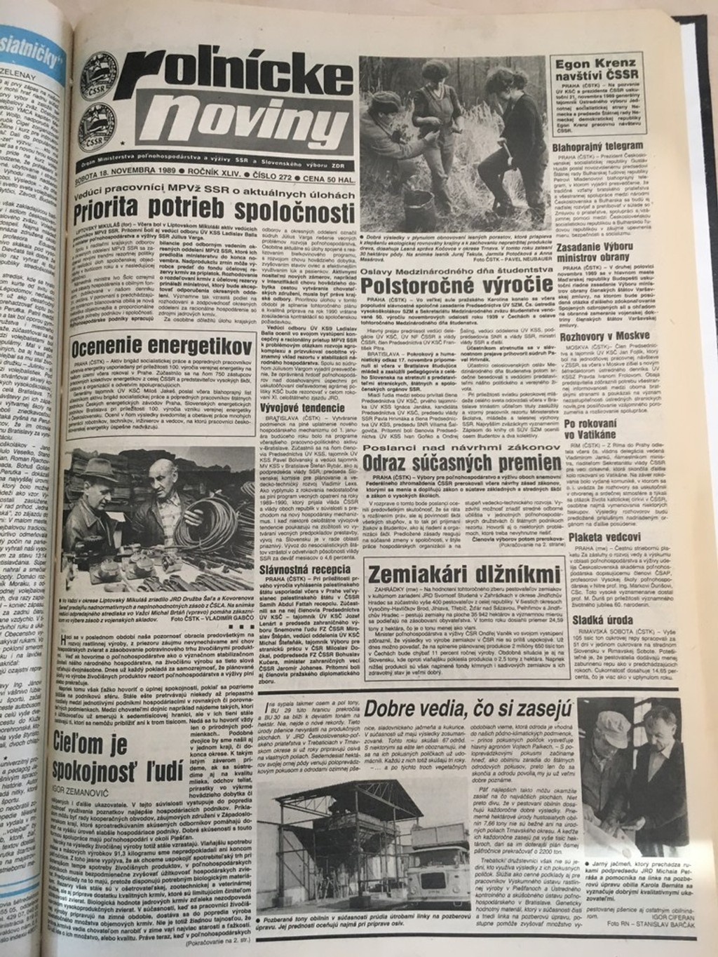 Roľnícke noviny od roku 1930 zastávali rolu odborného a stavovského periodika, vzdelávali poľnohospodársku verejnosť, prinášali odborné a aktuálne informácie. O demonštráciách v Prahe či v Bratislave sa na svojich titulných stranách ani nezmienili.