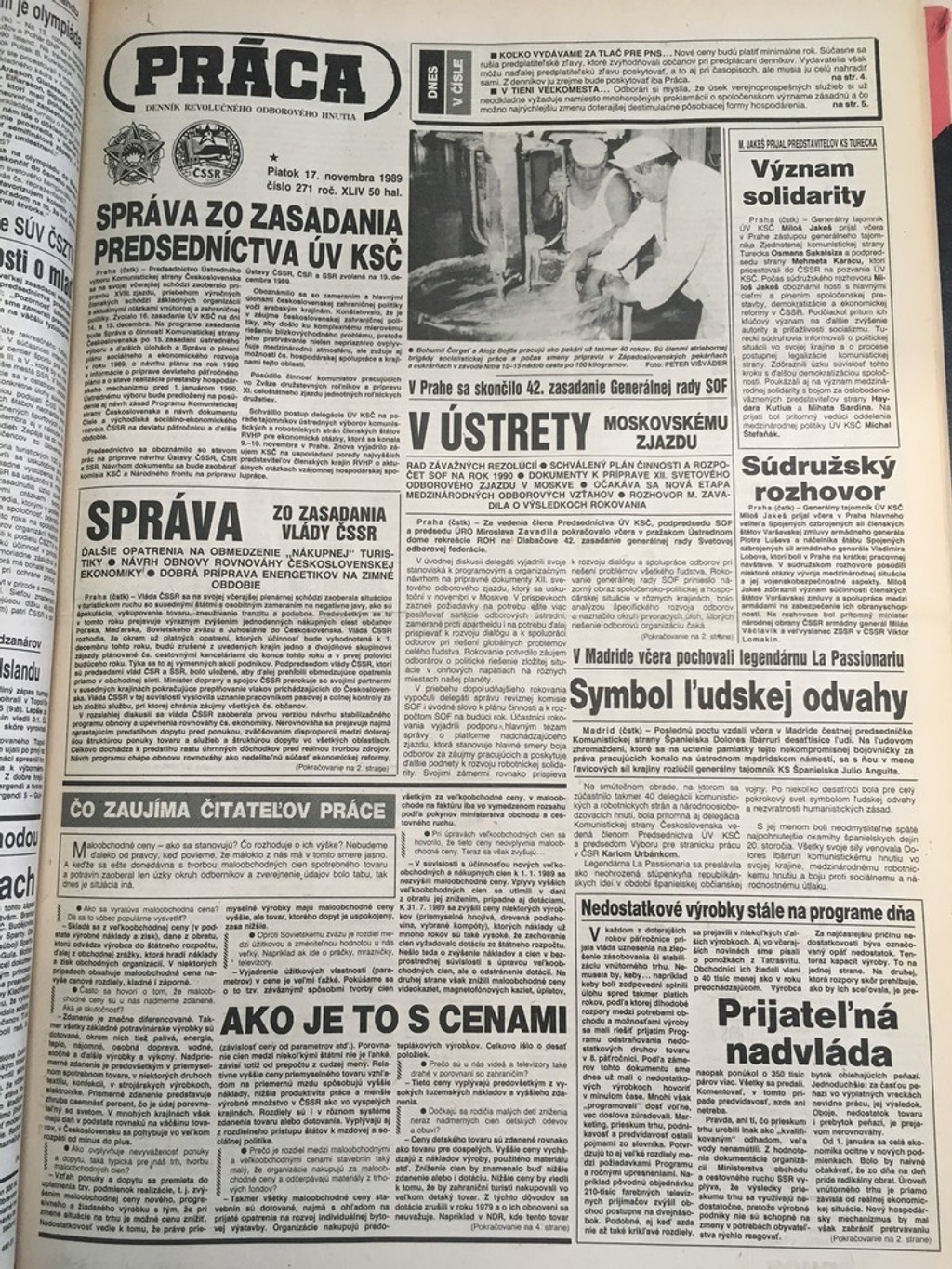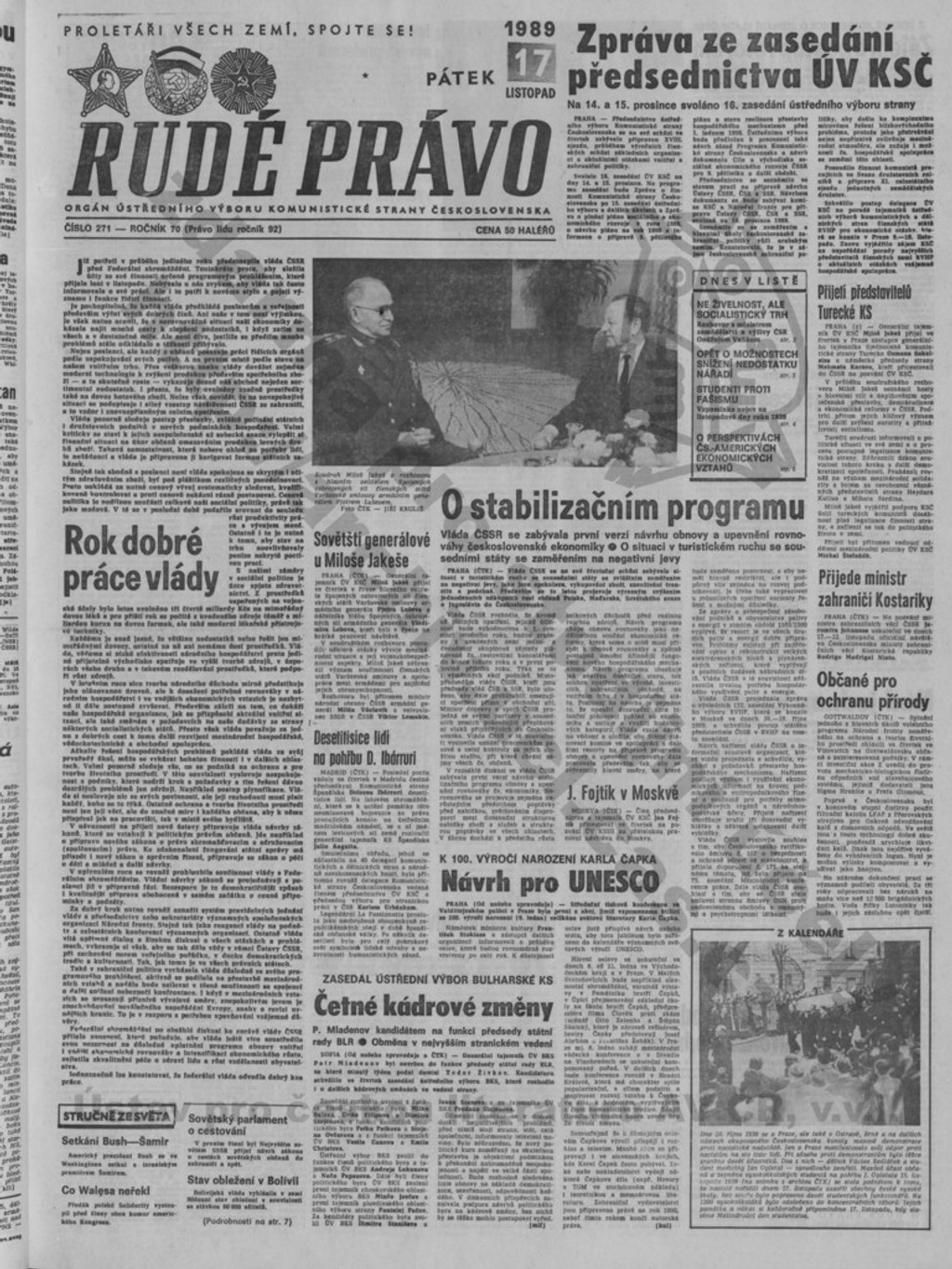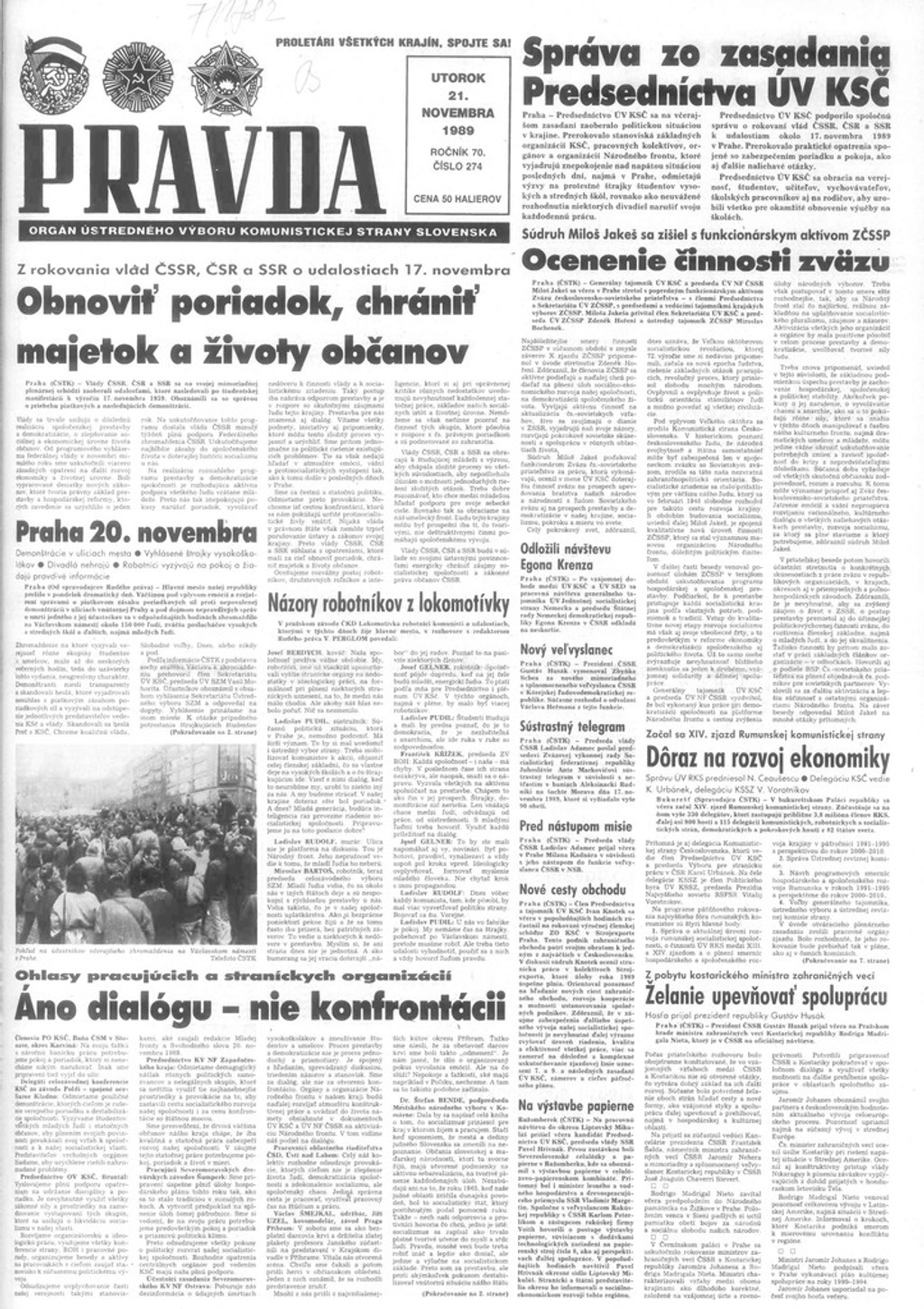Denník, ktorý sa o protestoch vyjadroval veľmi negatívne. Hral dôležitú úlohu v propagande režimu. Titulná stránka 17. novembra informuje skôr o „roku dobrej práce vlády" alebo o „kádrových zmenách a „stabilizačnom programe". O protestoch informujú až o niekoľko dní neskôr s tým, že ide o provokácie na destabilizáciu politickej moci. Ľudí vyzývajú k rozvahe a občianskej zodpovednosti.