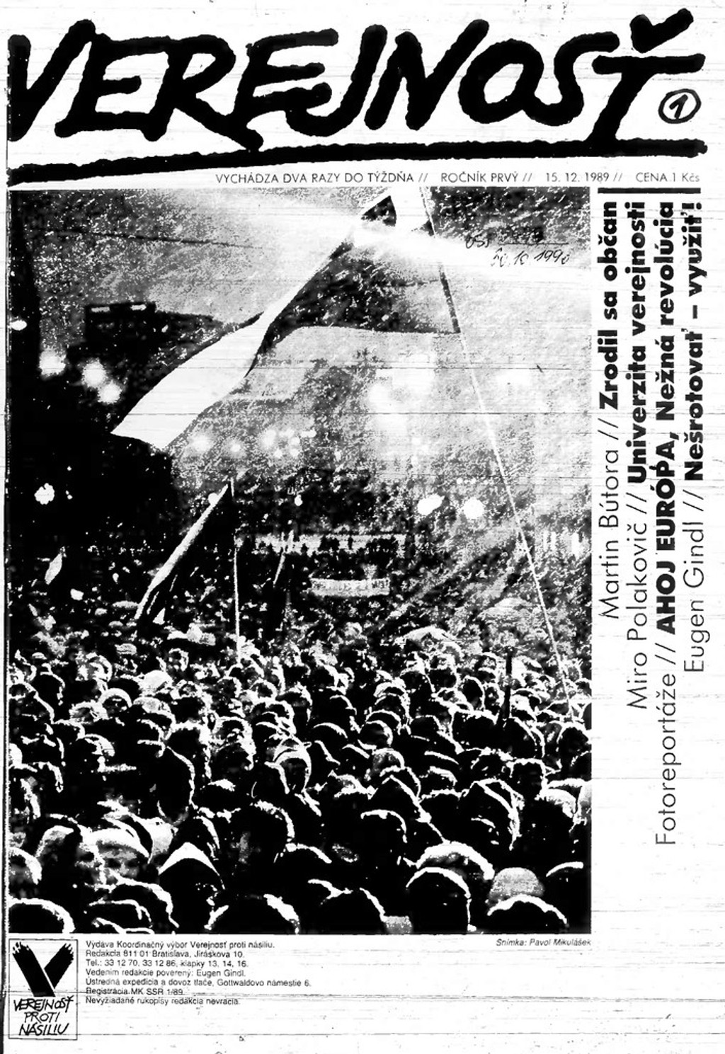 Periodikum vzniklo až po novembri 1989. Preto prvé informácie o revolúcii prináša až 15. decembra 1989. Stalo sa hlavným médiom revolučného hnutia Verejnosť proti násiliu. Prvé číslo je celé venované revolúcii. Fotografie a články si môžete pozrieť aj vy.