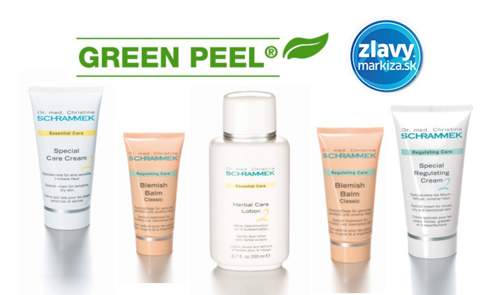 Green Peel (biologický peeling obsahujúci čisto biologické ingrediencie určený na riešenie kozmetických problémov ako napr. nečistá, pórovitá pokožka, hyperpigmentácie, vrásky).