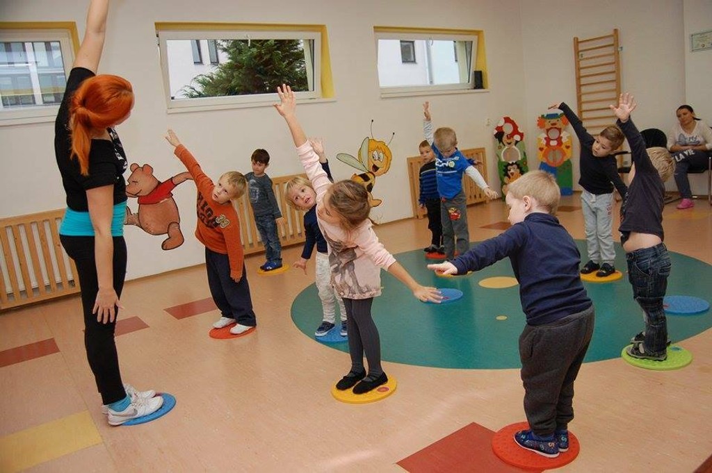 „Čím je dieťa staršie, tým mu dávame úlohy, ako skákať- spolu obe nohy na raz, na striedačku, na jednej nohe, malé výskoky, veľké výskoky. Deti si spevňujú chrbát, nohy a precvičujú sústredenosť," hovorí.
