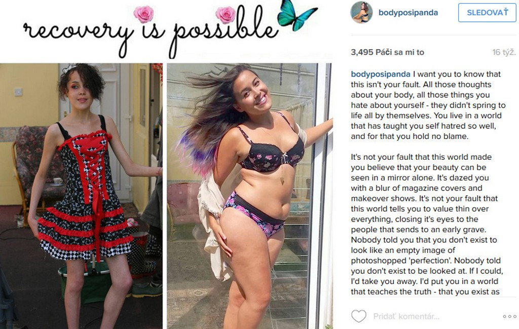 Ako píše viralnova.com, keď mala len 31 kíl hospitalizovali ju v nemocnici, kde jej cez sondu dávali živiny. Bola krehká a veľmi chudá. Takmer zomrela. Nad anorexiou však nakoniec zvíťazila a rozhodla sa, že svoj príbeh poskytne celému svetu aj pomocou sociálnych sietí. Sledujú ju tisíce ľudí. Na Instagram pravidelne pridáva svoje fotografie a ukazuje, že sa dá prejsť zmenou a žiť šťastne.