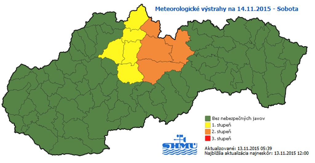 V sobotu bude premenlivá oblačnosť s prehánkami, ktoré môžu byť zhruba od 800 metrov snehové. V okresoch Brezno, Liptovský Mikuláš, Tvrdošín a Poprad bude vyčíňať aj silný vietor.