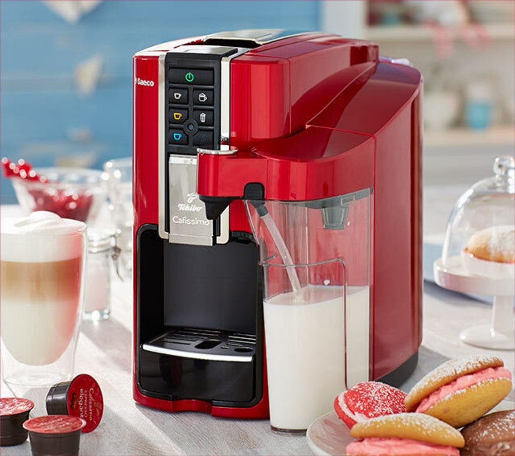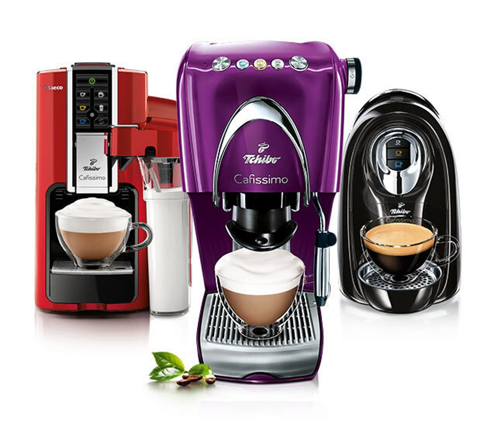 Najnovším z ponuky je plne automatický kávovar Tchibo Cafissimo Latte, ktorého hlavnou výhodou je zásobník na čerstvé mlieko, vďaka ktorému sa z neho stáva špecialista na kávové mliečne nápoje. Jednoducho, rýchlo a čisto pripraví cappuccino alebo latte macchiato v kvalite ako od profesionála. Praktický je aj jeho zásobník na použité kapsule. Cafissimo Classic je elegantný kávovar s inteligentnou parnou tryskou, ktorá rovnako pomôže pripraviť mliečnu penu pre kávové špeciality. Vyhovuje tým, ktorí sa s prípravou kávy radi trochu pohrajú. Najmenší z ponuky je Cafissimo Compact, ktorý je určený predovšetkým milovníkom kvalitného espressa, caffè crema a prekvapkávanej kávy, teda pre čiernu kávu bez mlieka, naviac má taktiež praktický zásobník na použité kapsule. Všetky kávovary sú k dispozícií v rôznych farebných variantoch.