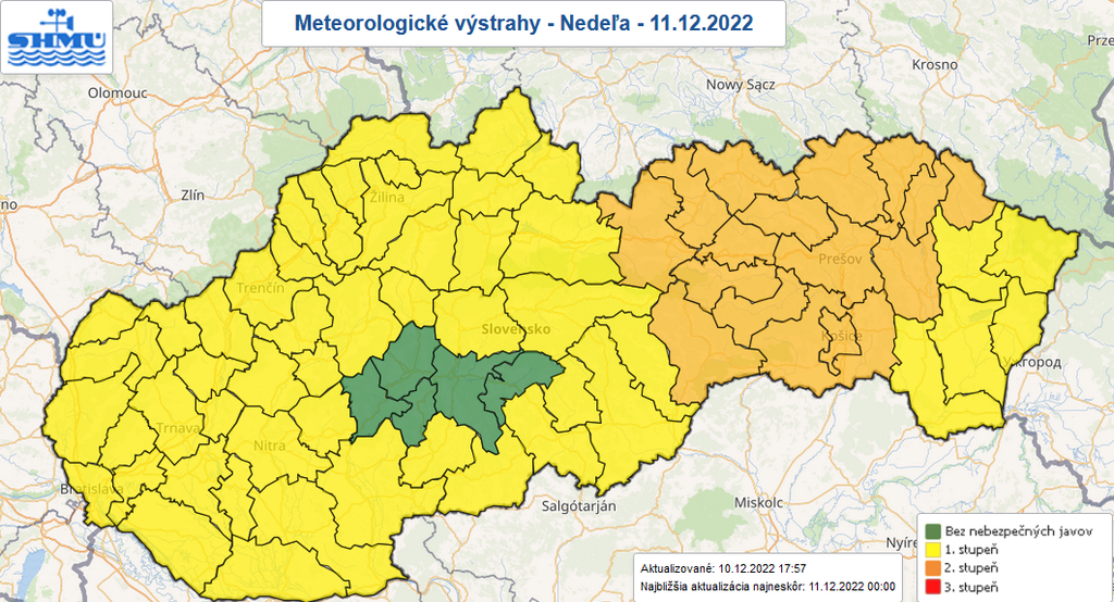 Okrem dažďa, poľadovice či vetra ide tiež o sneženie a tvorbu snehových jazykov a závejov, ktoré sú v platnosti poväčšine od polnoci na nedeľu (11. 12.).